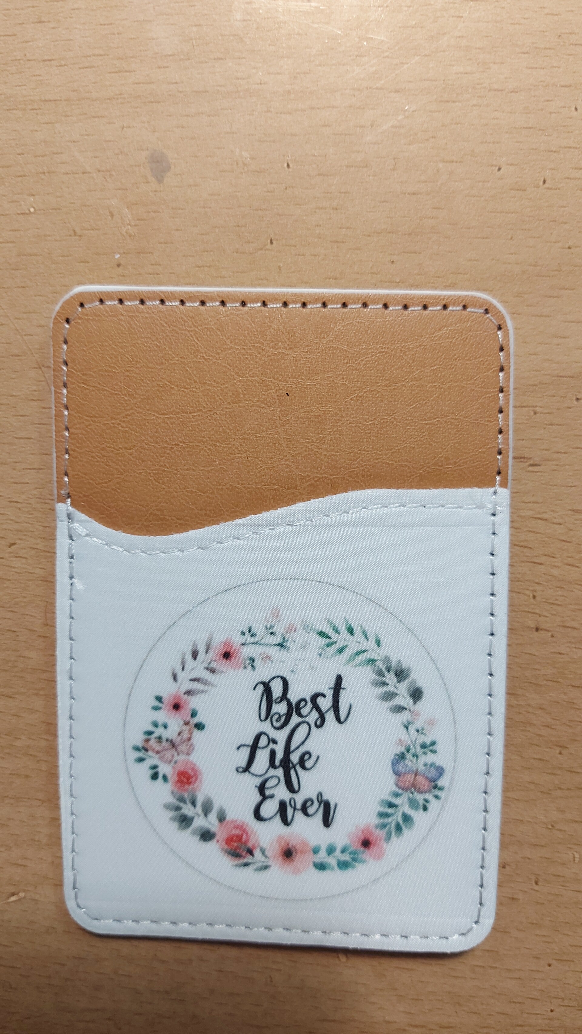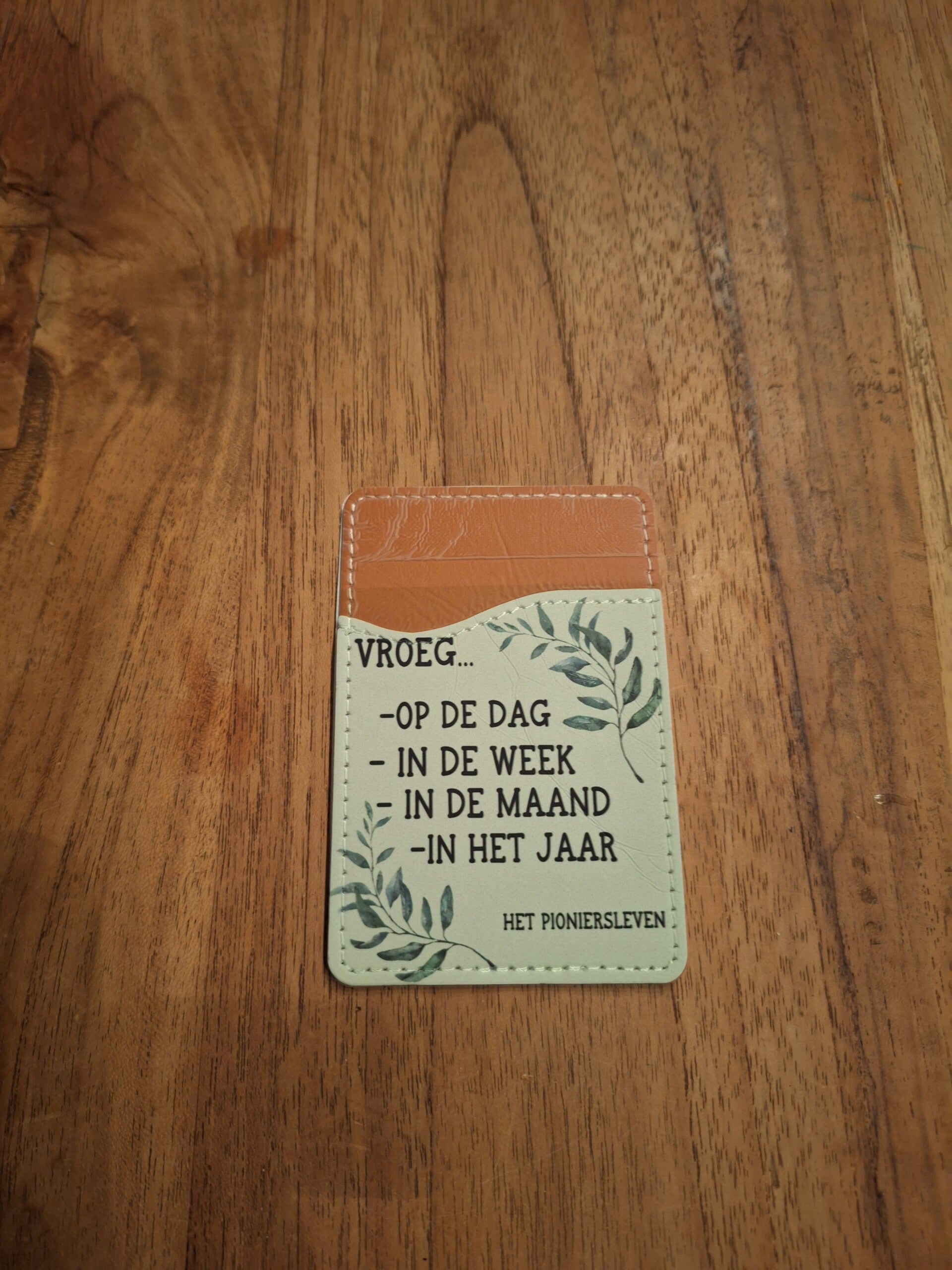 Een handige houder voor achterop je telefoon, waar je een contactkaartje in kan bewaren.